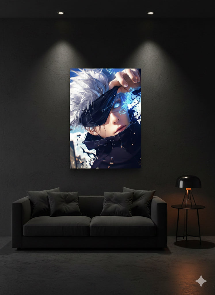 • Limitless Technique: The blue, crackling energy around his face represents the activation of his inherited technique: