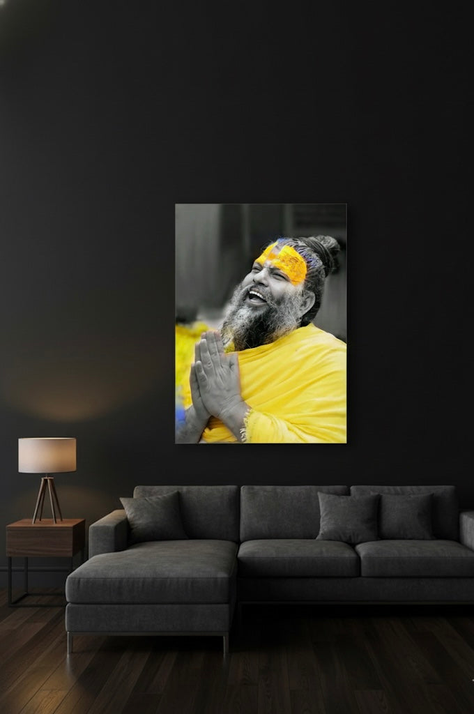 Bring the profound spiritual energy of Vrindavan into your home with this stunning metal print featuring Shri Hit Premanand Govind Sharan Ji Maharaj.